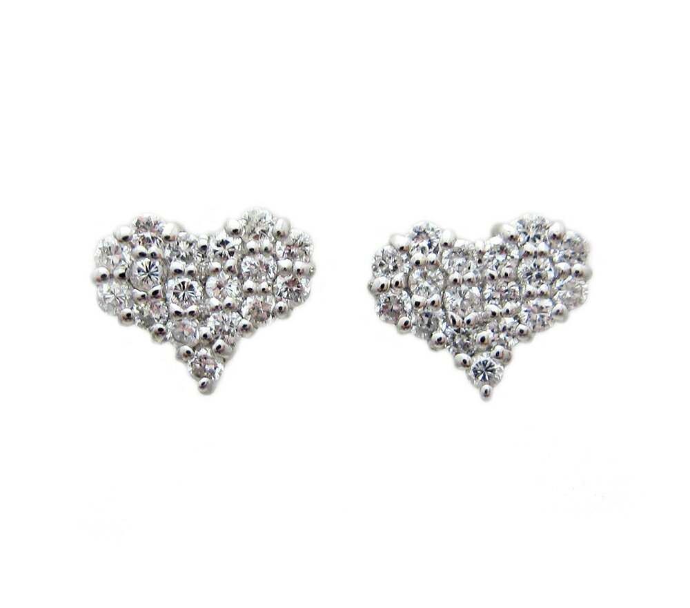 プラチナ パヴェ ダイヤモンド ハート ピアス