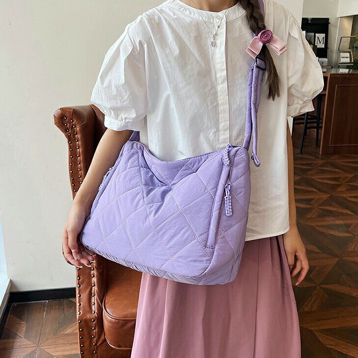 軽量で大容量のナイロン素材斜め掛けショルダーバッグ通勤通学向けカジュアルで柔らかい無地ダイヤモンドチェック柄洗濯可能