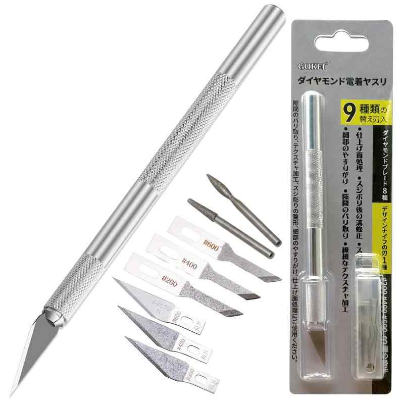 GOKEI ダイヤモンドヤスリ 精密ヤスリ 【9種類の替え刃入 超硬極薄ヤスリ 0.6mm】 ホビー用ヤスリ ダイヤモンド電着ヤスリ バリ取り やすり プラモデル 工具 シャープナー 硬い素材の研磨 研