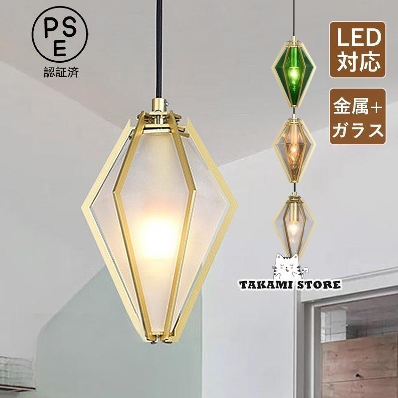 ペンダントライト ガラス 北欧 おしゃれ LED対応 ダイヤモンド型 ひし形 ステンドグラス 和風 天井照明器具 ダイニング 吹き抜け 吊り下げ照明