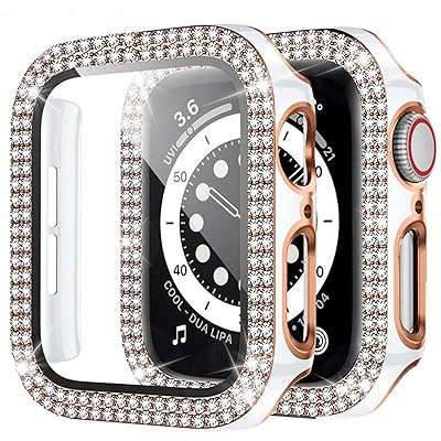 アップルウォッチ カバー40mm 41mm 42mm 44mm 45mm 46mm対応 アップルウォッチ 本体 ダブルダイヤモンド ガラスフィルム付 超薄型 PC+ガラス素材 高透過率apple watch カバーキズ防止 簡単に取り付け・取 全面保