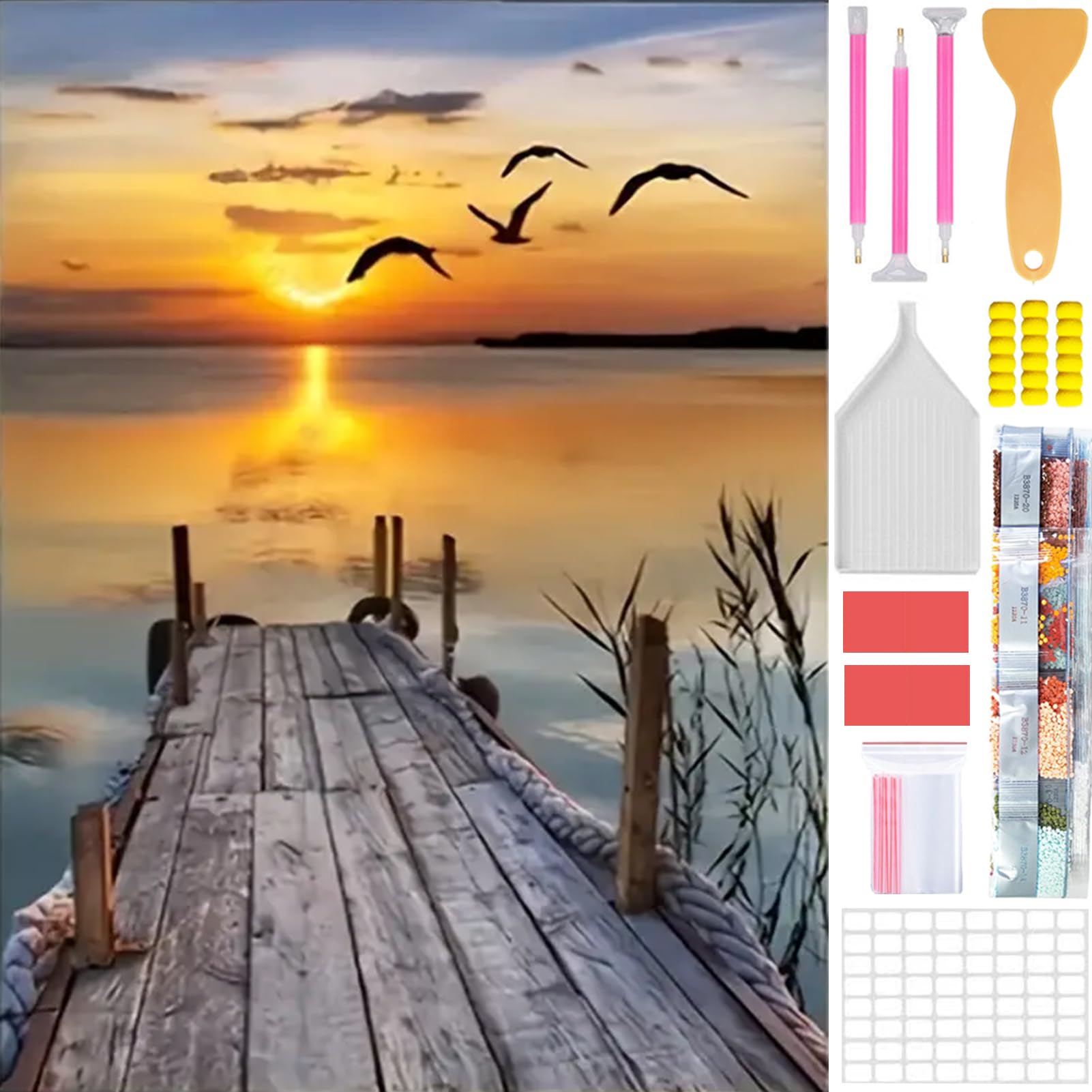 Amyaker ダイヤモンドアート キット 四角いビーズ 全面 ダイアモンドビーズ絵画キット 日本語キャンバス DIY 手作り絵画 手芸キット モザイクアート 5D モザイクアート ダイヤモンド塗装 全面貼り付けタイプ 30x40cm 海辺夕焼け