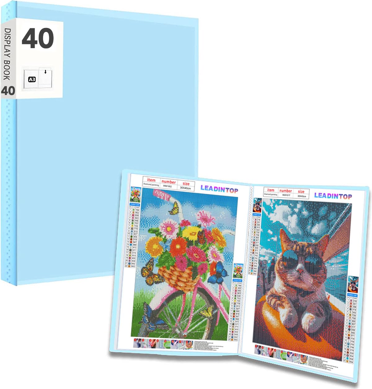 LEADINTOP ダイヤモンドアート 収納フォルダー A3 ダイヤモンド絵画収納フォルダー 40ページ 防水透明カバー ダイヤモンド刺繍収納ブック ダイヤモンドアートツール フォトアルバムブック アートポートフォリオ収納キャビネット 大容量 軽量設計 持