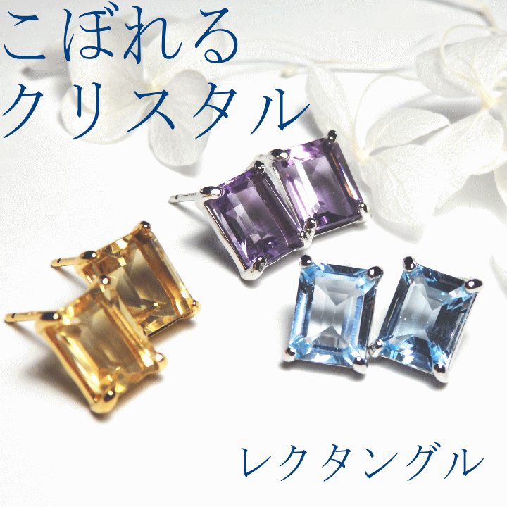 アメシスト・シトリン・ブルートパーズの長方形ストーンピアス。 『こぼれるシリーズ』のストーンタイプ!日頃とっても使いやすいです!!