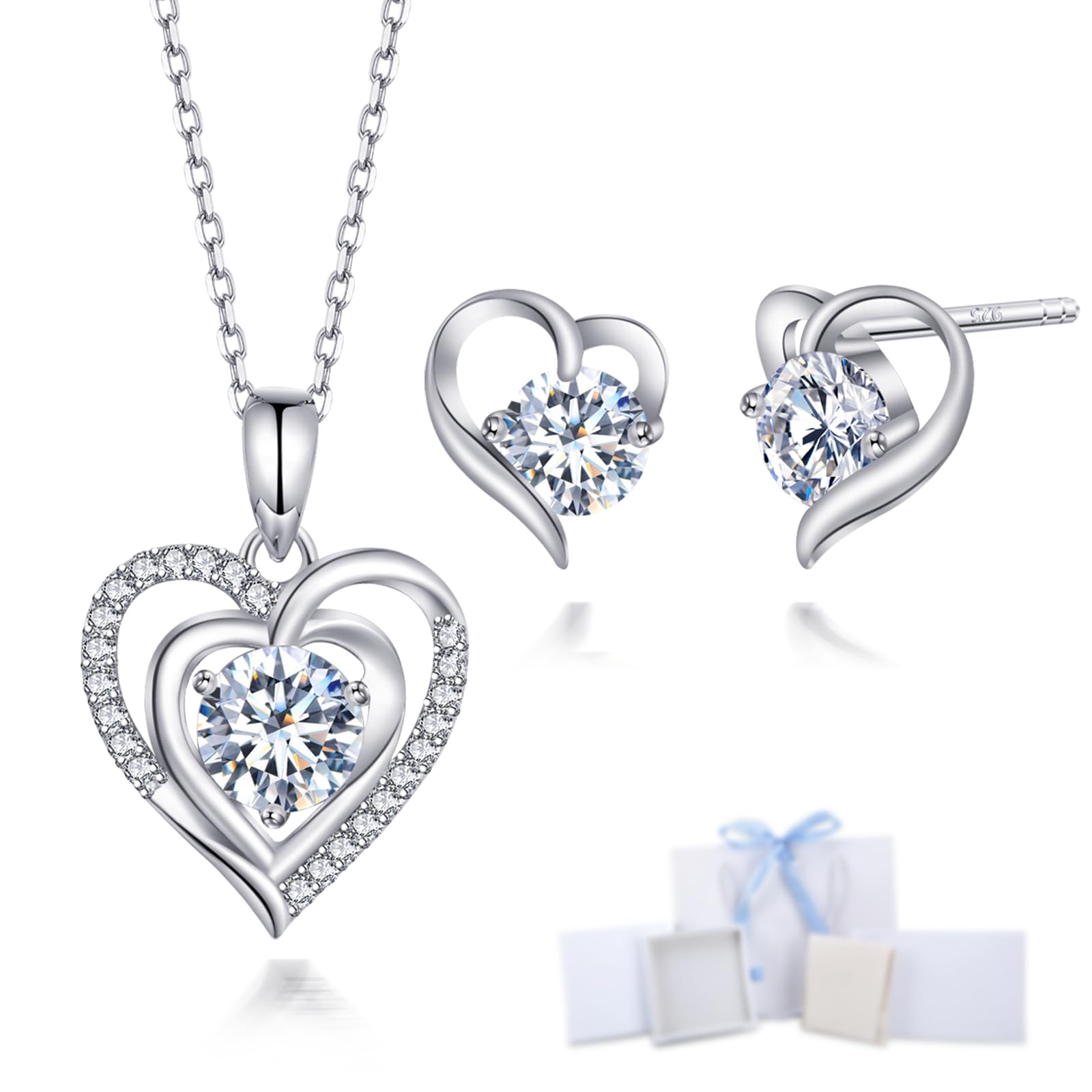 [Free bird] ハート ネックレス レディース ジルコニア 5A 採用 ネックレス ピアス セット シルバー 925 金属アレルギー 誕生日 ギフト女性 ジュエリー クリスマス 母の日プレゼント人気