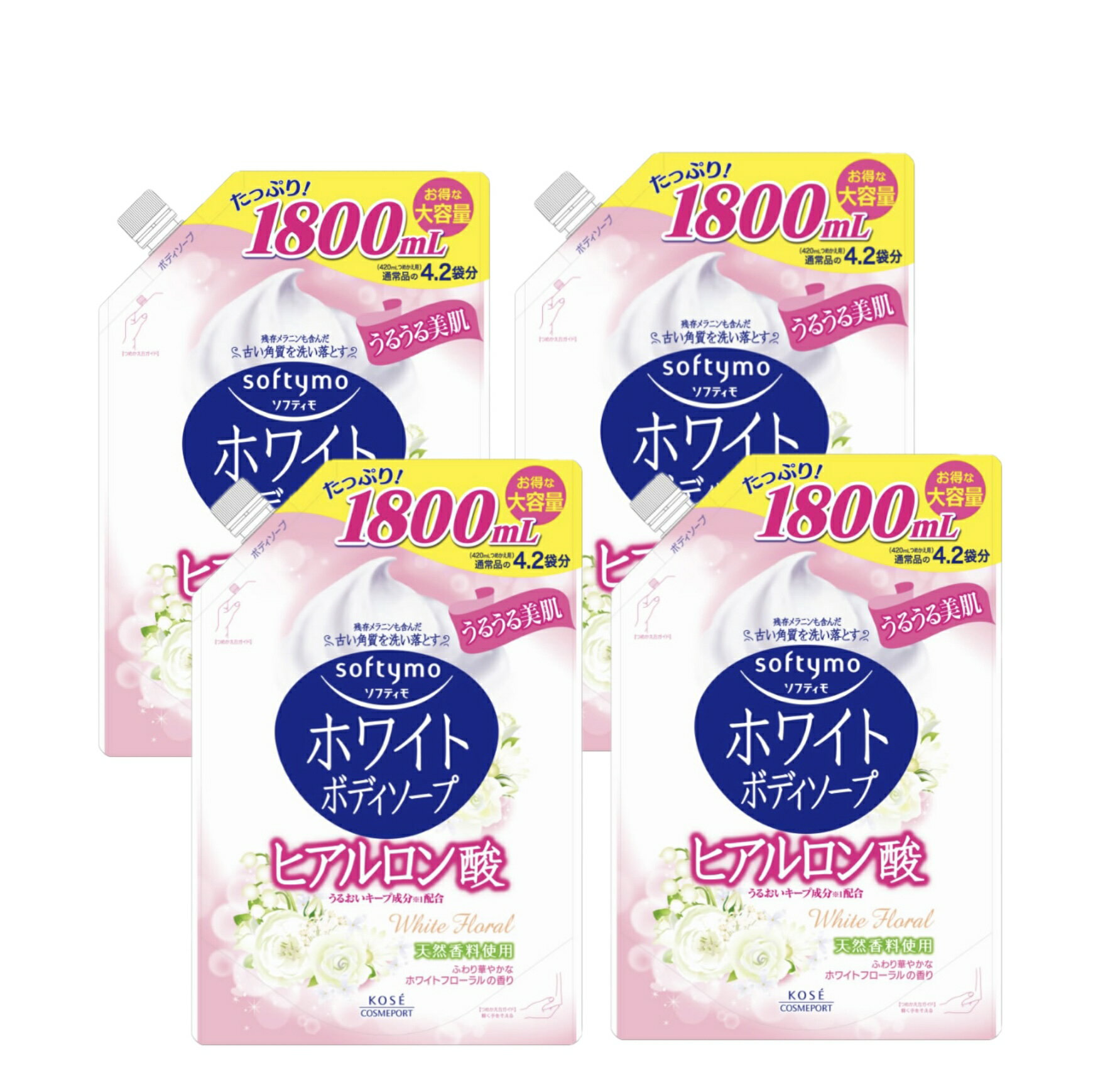 コーセーコスメポート ソフティモ ホワイト ボディソープ ヒアルロン酸 大容量 つめかえ用 (1800mL) 詰め替え用