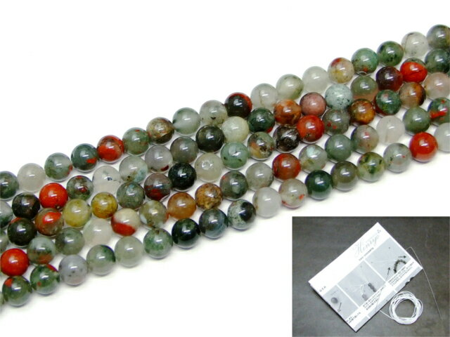 アフリカブラッドストーン 8mm 1連38cm 通し針、解説書、1mゴム付き 天然石 パワーストーン