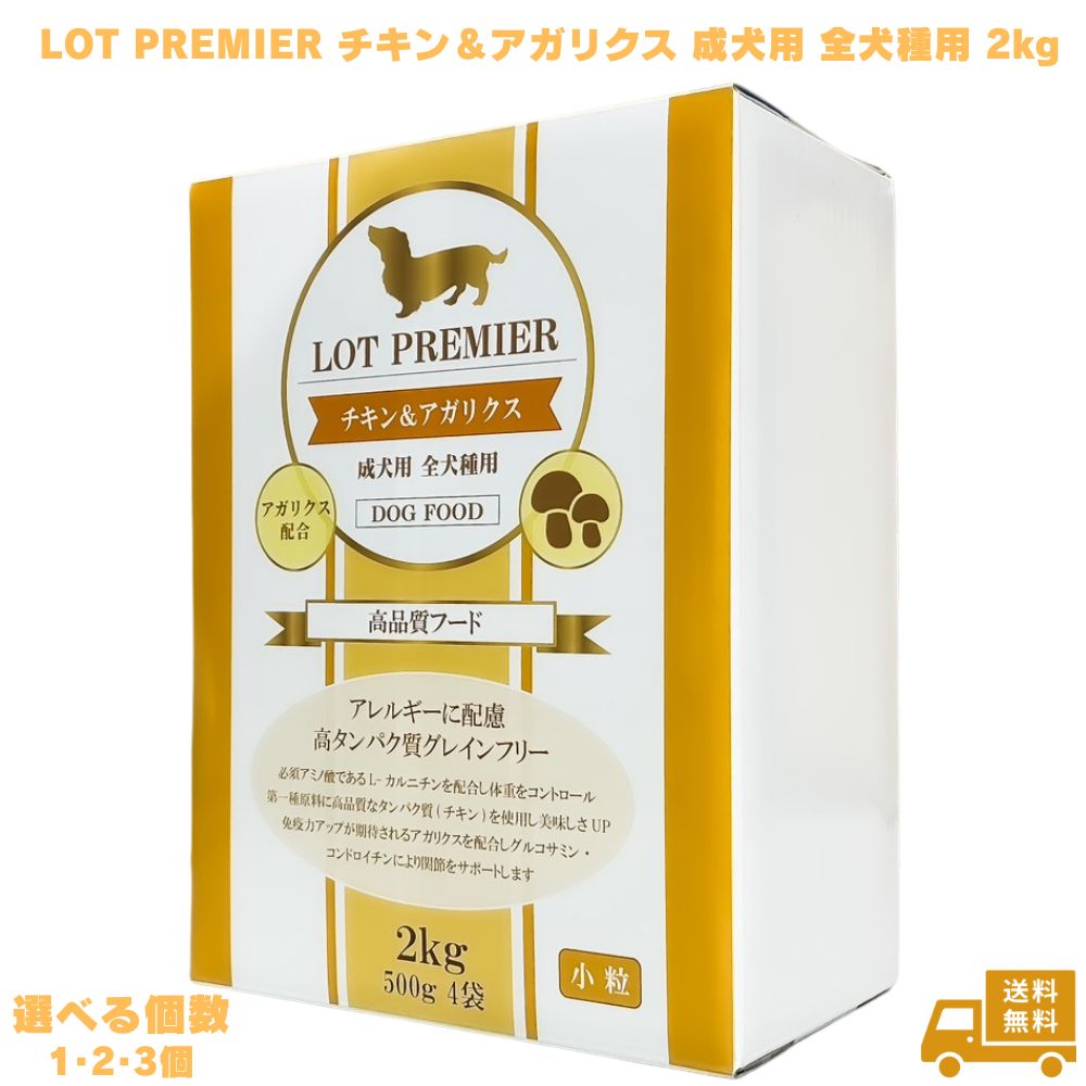 LOT PREMIER チキン&アガリクス 成犬用 全犬種用 2kg ドッグフード 小粒 グレインフリー 着色料 保存料 不使用 コンドロイチン グルコサミン プロバイオティクス 犬 犬用 成犬用 ご飯