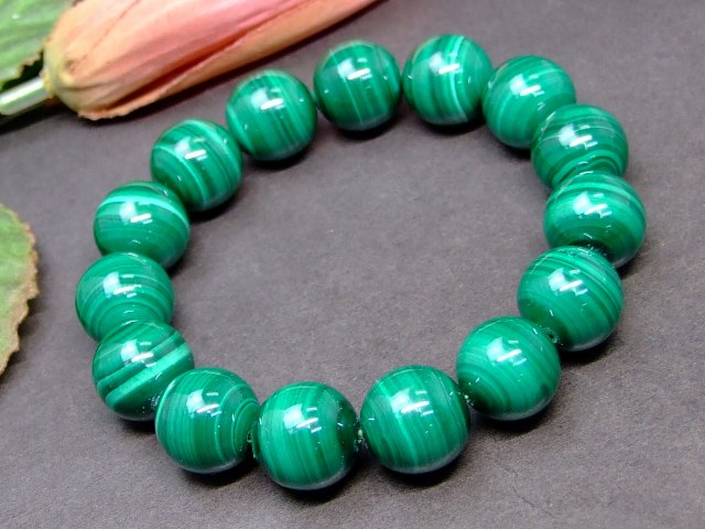 AAA 14mm マラカイト 孔雀石 ブレスレット 内径調整可能 ポーチ付き 天然石 パワーストーン