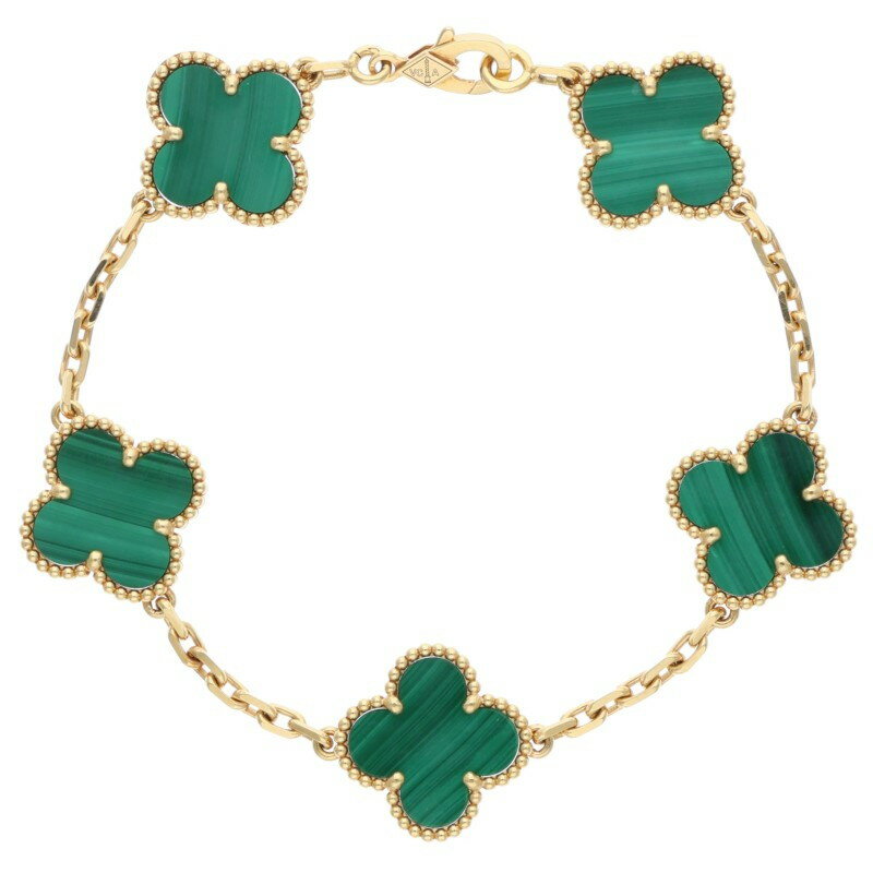 ヴァンクリーフアンドアーペル VANCLEEF & ARPELS ヴィンテージアルハンブラ VCARL80900 K18YG 5Pマラカイトブレスレット(イエローゴールド×グリーン 12.37g)【329052】【GZ14】【小物】【中古】bb328#rinkan*B