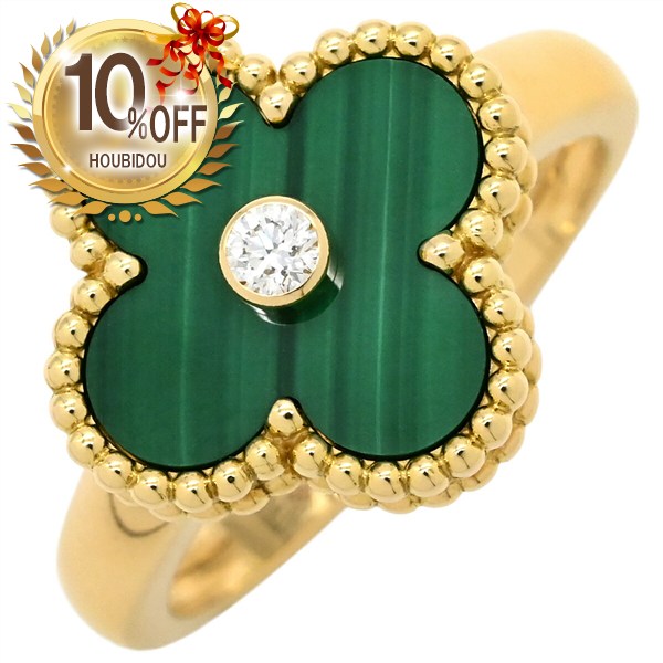 楽天スーパーSALE限定 ヴァンクリーフアーペル Van Cleef & Arpels VCA ペルレ クルール アントレ レ ドア リング 指輪 750 18K YG イエローゴールド ダイヤ マラカイト 美品 送料無料