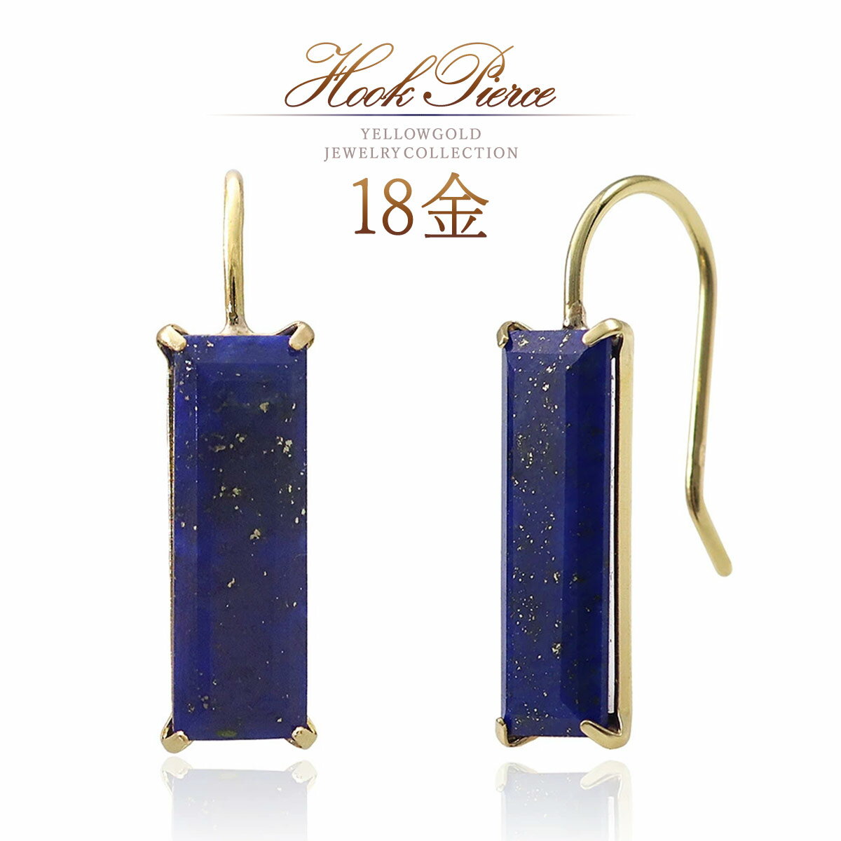 18金 フックピアス ラピスラズリ 18K K18 イエローゴールド 天然石 揺れる 12月 誕生石 普段使い デイリー お呼ばれ オシャレ 大人 可愛い 金斑 クリスマスプレゼント
