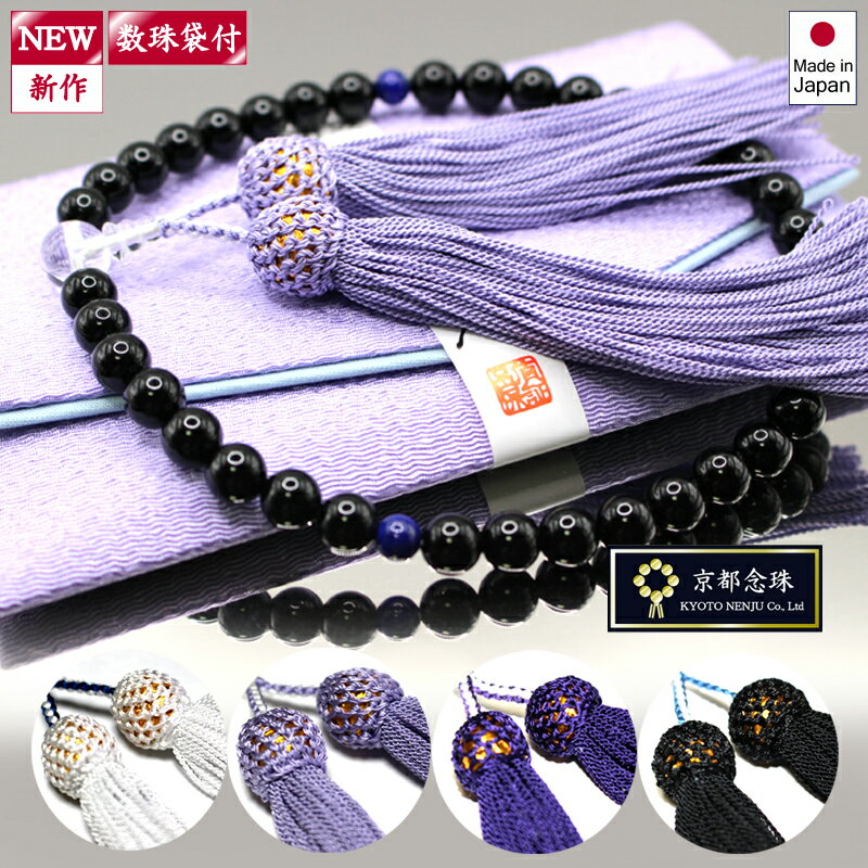 【新作/数珠女性用】お葬式の礼儀に適したオニキス&ラピスラズリ。数珠袋付きですので、お好きな房色、お好きなカラーの数珠袋をお選びいただけます。
