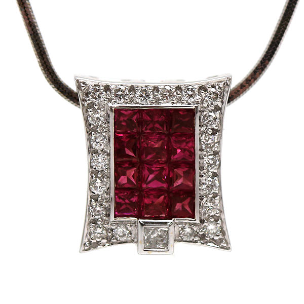 K18WG スクエアネックレス 約45cm ルビー 1.22ct ダイヤモンド 0.25ct 18金 ホワイトゴールド 四角 21346 【中古】