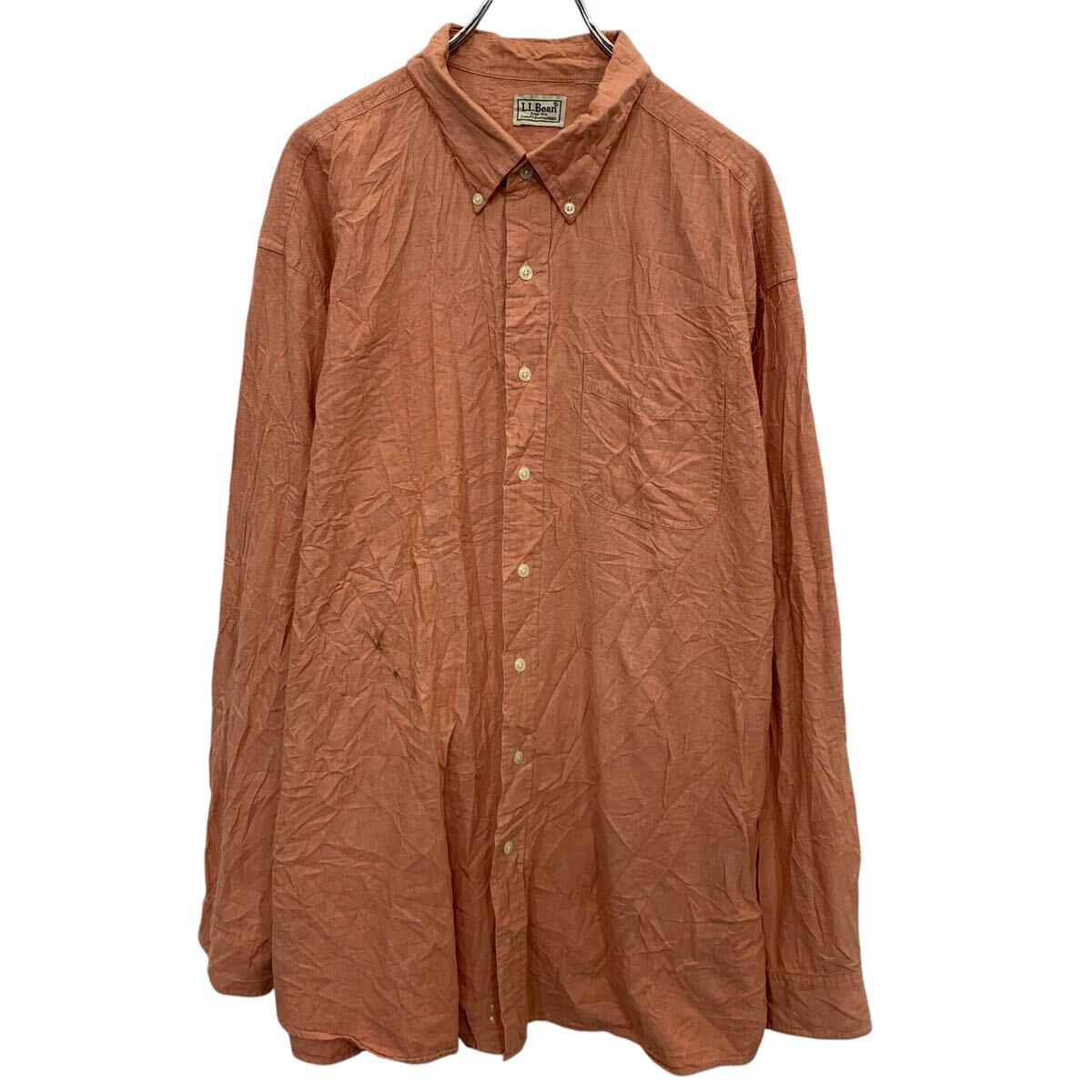 【中古】【古着】 L.L.Bean 長袖 無地シャツ XL〜 サーモンピンク エルエルビーン ボタンダウン ビッグサイズ シンプル 古着卸 アメリカ仕入 a704-5677