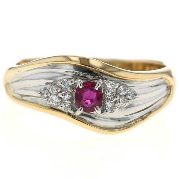 K18YG Pt900 コンビ リング ルビー 0.20ct ダイヤモンド 0.09ct オーバル ウェーブ 指輪 15号【新品仕上済】【zz】【中古】【送料無料】