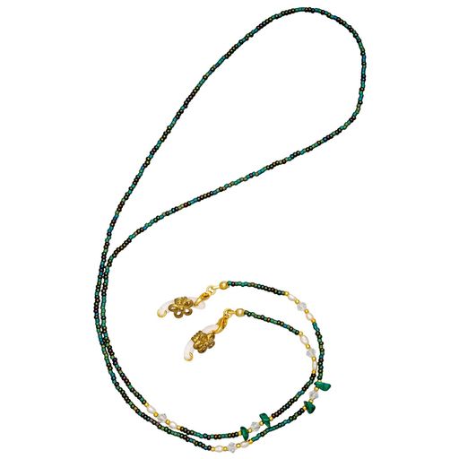 テーシーケース(Tccase)メガネホルダーメガネストラップ70cmシンプルネックレス淡水パールマラカイトスワロフスキーアクリルビーズずれ落ち防止アイウェアストラップグリーン