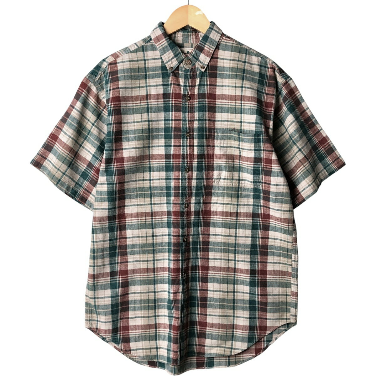 古着 70~80'S エルエルビーン L.L.Bean チェック柄 半袖 コットン×リネン ボタンダウンシャツ メンズM相当 ヴィンテージ