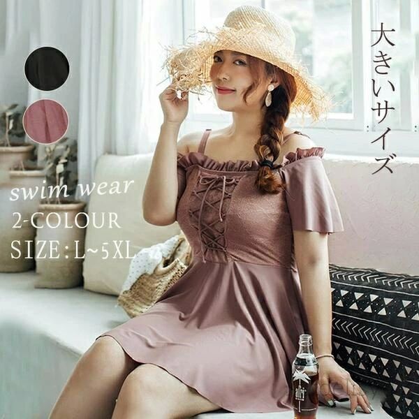 【送料無料】水着 レディース ワンピース オフショルダー 編み上