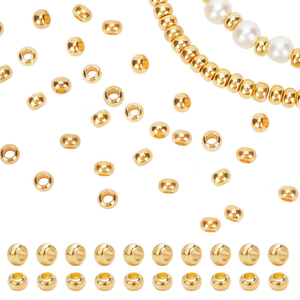 【送料無料】PH PandaHall 約100個/セット 大穴ビーズ 6x4mm メタルビーズ ロンデル スペーサービーズ 糸通しビーズ 丸玉 ラウンドビーズ 基礎パーツ 金具セット ジュエリー DIY用 手芸用品 手作り素材 ゴールド