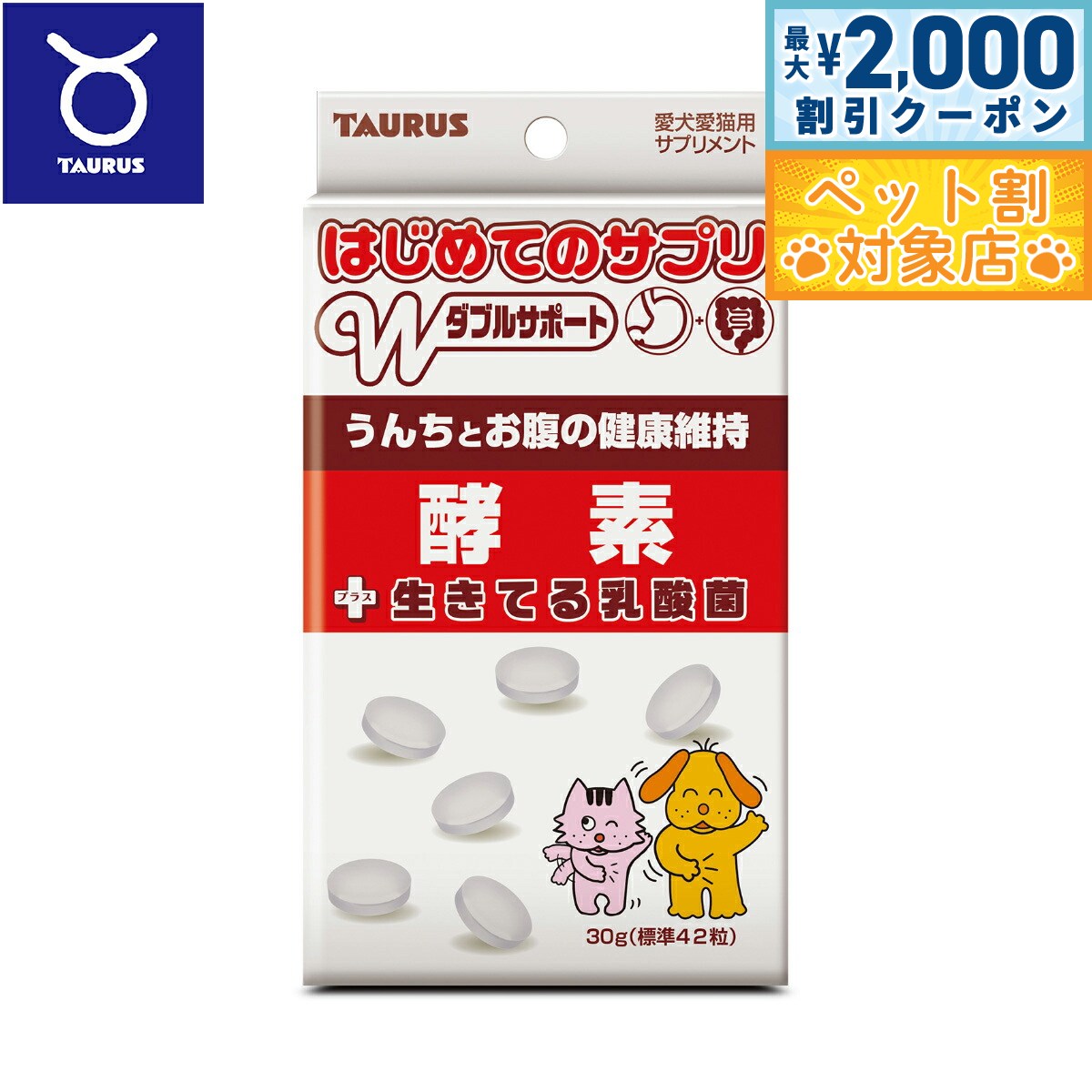 トーラス はじめてのサプリ Wサポート うんちとお腹の健康維持 酵素 +生きてる乳酸菌 愛犬愛猫用