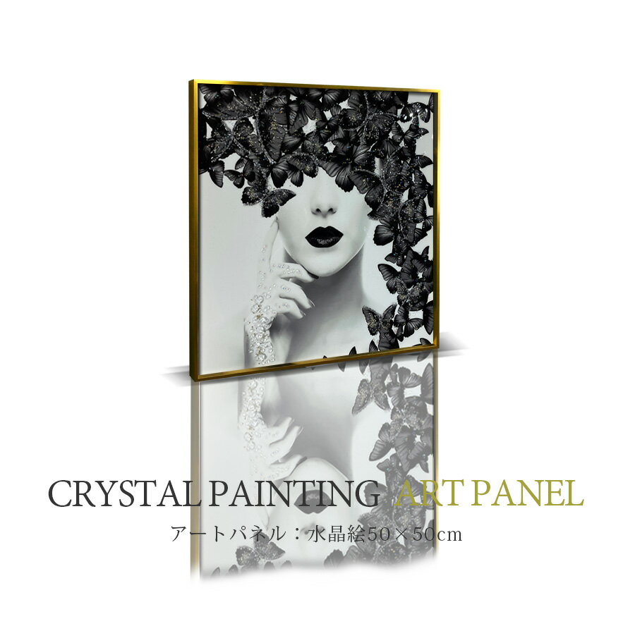 アートパネル モダン おしゃれ モノクロ 玄関 モノトーン 50×50 水晶絵 人物 女性 壁掛けパネル 絵 アート かっこいい 人物画 フレーム付き
