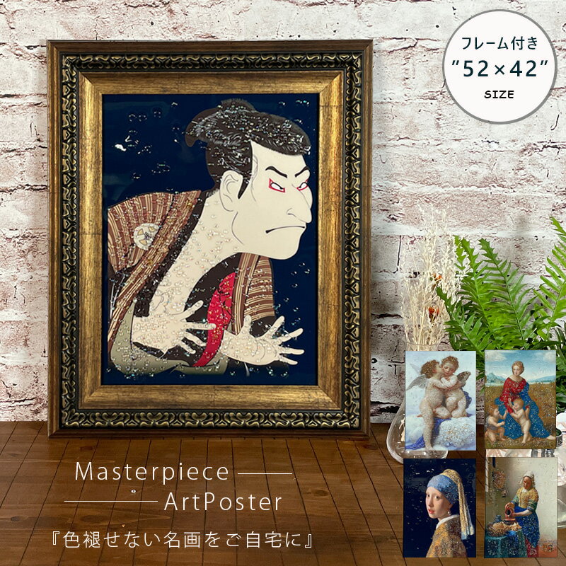 アートポスター アートパネル フレーム付き 絵画 名画 6作品 水晶絵 おしゃれ モダン 52×42cm 約A8サイズ 壁掛けパネル アート プレゼント リビング 玄関 寝室に飾れる