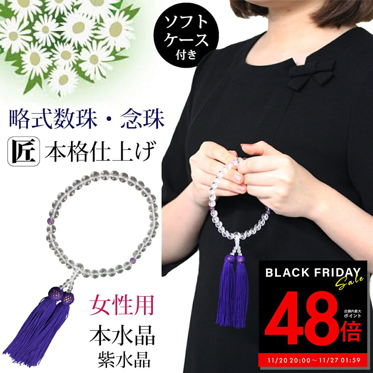 数珠 念珠 数珠袋 袱紗 葬式 通夜 女性用 水晶 京都 送料無料