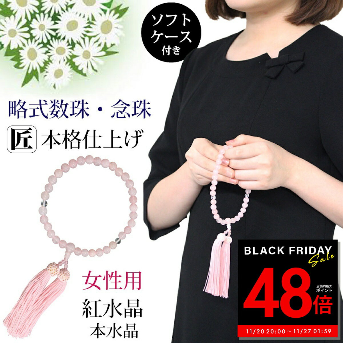 数珠 女性用 ローズクォーツ 水晶 正絹房 略式数珠 京念珠 京都 法事 葬儀 葬式 法要