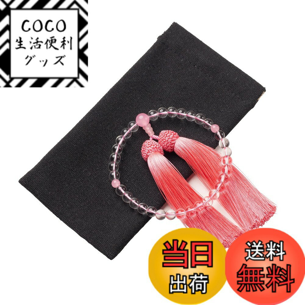 【送料無料】数珠 女性用 本水晶 藤雲石 正絹房 略式数珠 念数珠 念誦 じゅず 葬式 法事 法要 じゅず 約7ミリ 色:ローズクォーツ02、サイズ:8mm