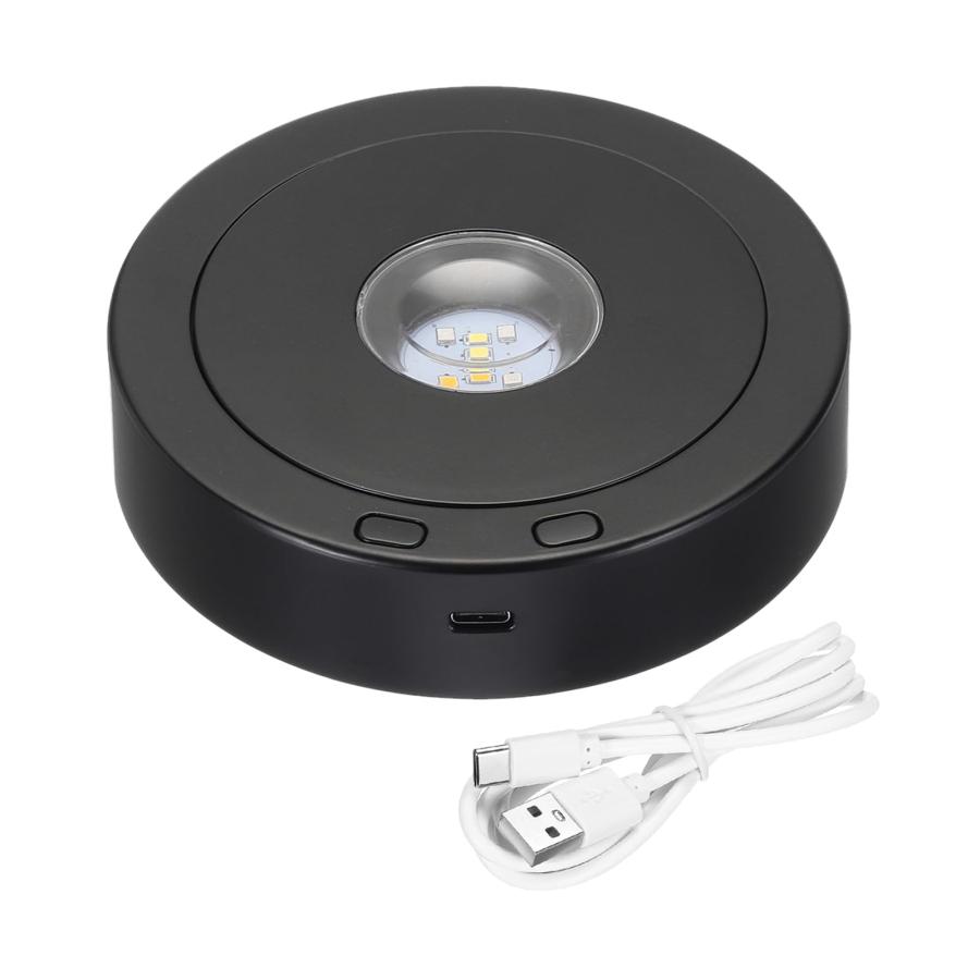 PATIKIL 11.5 x 9 cm 回転ディスプレイスタンド LEDライトベース 360度カップ台座 4つの回転と8つのライトモード付き 水晶