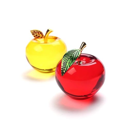 2点セットリンゴ風水幸運クリスタル天然石金運アップ縁起パワーストーンリンゴ置物透明感林檎水晶風水開運玄関飾りオブジェインテリアリンゴギフトプレゼント(レッド+イエロー)