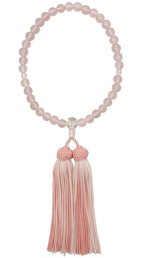 京都土屋念珠店女性用数珠【セパレート】ローズクォーツ水晶入正絹房国産手作り桐箱入-すべての宗派でご使用頂けます-