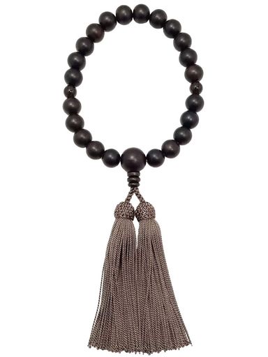 中郷明治18年創業京念珠黒檀素引22玉茶水晶仕立正絹頭房付念珠袋付(全ての宗派で使える男性用)