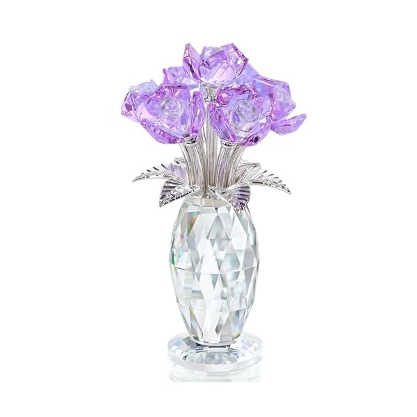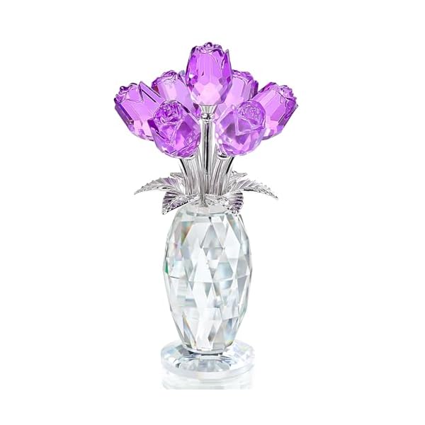 高級クリスタル製のバラ造花 女性 人気 置物 水晶 枯れない花 ガラス細工 置物 結婚記念日 妻 プレゼント 結婚祝い 母の日 送別会 卒業祝い クリスマス 枯れない花のインテリア誕生日結婚記念日退職祝 新年フォーチュンギフト パープル