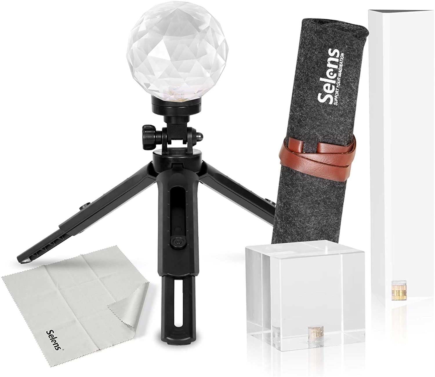 【送料無料】Selens 撮影用 クリスタルボール ボール/三角プリズム/正方体 3点セット ミニ三脚付き 無色透明 水晶玉 撮影道具 レインボー効果 物理学 光の分散など