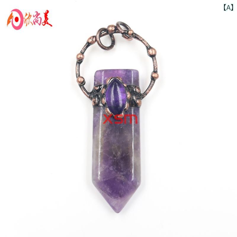 ネックレス レディース メンズ 紫水晶 ローズクォーツ 剣型 ペンダント 民族風 パンク ヒップホップ 白水晶 虎眼石 アゲート 電気メッキ加工 パーティー 普段使い