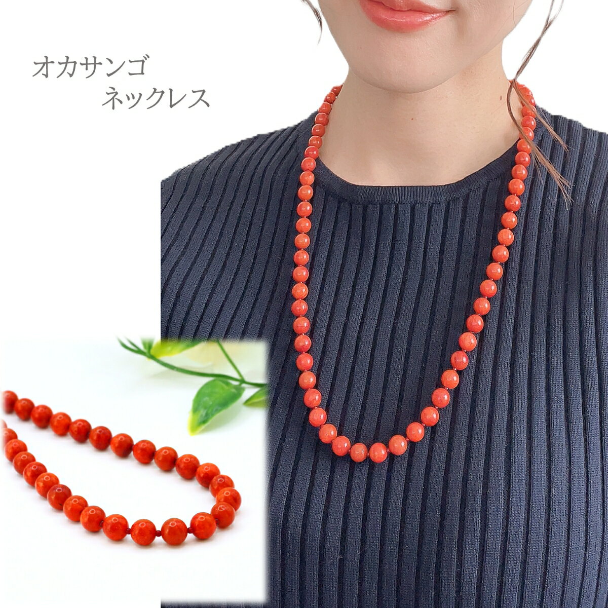 3月 誕生石 オカサンゴ ガラスシードビーズ ネックレス プレセントにもおすすめ