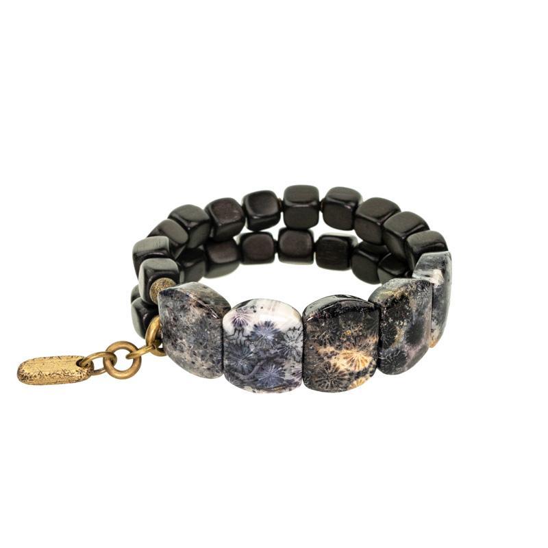 ブレスレット メンズ レディース 大人 カップル ペア アクセサリー 珊瑚石 水墨風 チャーム 普段使い 外出用 ダブルサークル おしゃれ