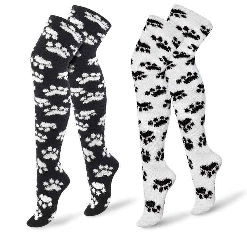 [LittleForBig] 長靴下 ストッキング【可愛い猫ちゃんの足迹柄】 サンゴソックス 2足組入「3色択」