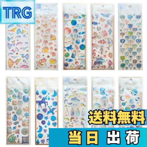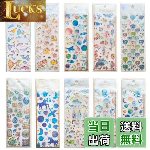 【送料無料】EUSTACE 手帳シール ご褒美 シール 10PCS かわいい ステッカー 手帳デコ シール 3D 立体 箔押し スクラップブック、日記、写真アルバム スマホ DIY 子供 成人 手作り 魚 イルカ、ドリフトボトル、うちわ、サンゴ、クラゲ、タツノオトシゴ、桜、宇宙 デザイン
