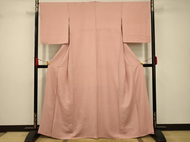 平和屋着物■上質な色無地 こぼれ松葉地紋 珊瑚色 正絹 逸品 DAAZ8008cd