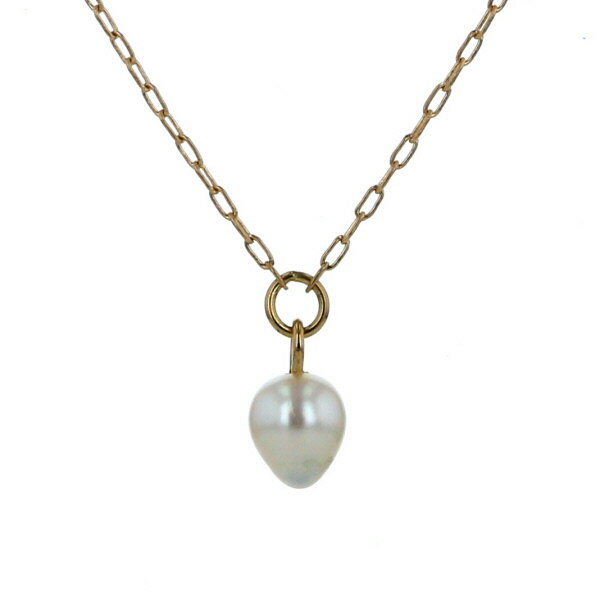 K14WG イエローゴールド ネックレス 真珠 4.5mm 2粒 華奢 シンプル デザイン アズキチェーン 42cm【新品仕上済】【zz】【中古】【送料無料】
