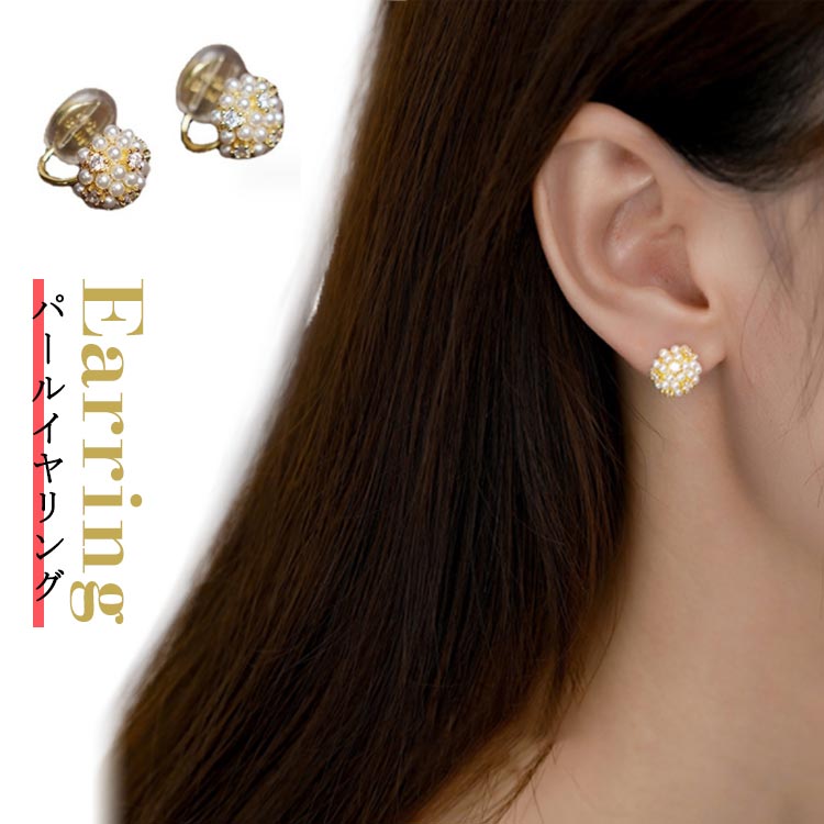 ピアス見え キラキラ パール イヤリング ノンホール ピアス 痛くない