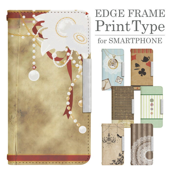 真珠 パール アンティーク トランプ 楽譜 譜面 ボタン アクセサリー ストライプ レース 手帳型 スマホケース 携帯カバー