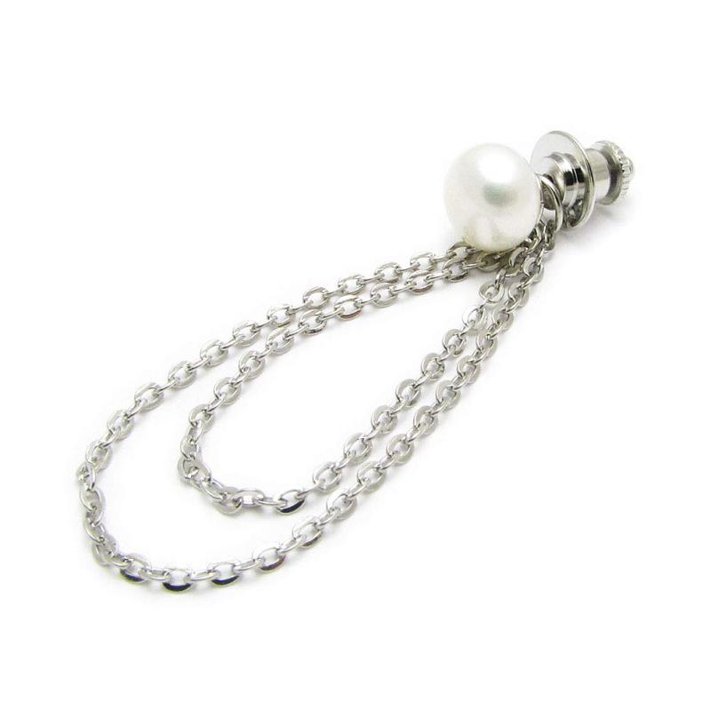 ラペルピン メンズ シンプル 淡水パール 真珠 本物 2WAY 黒真珠 着脱可能のチェーン付き JS10002