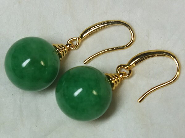 ■龍香堂■☆ミャンマー翡翠(ひすい)14mm玉ピアスyor