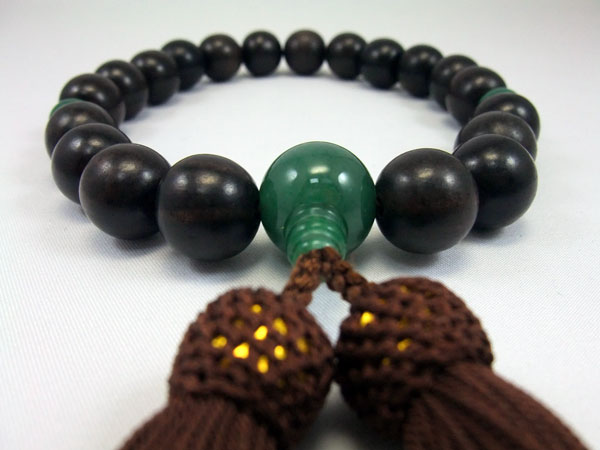 定番の縞黒檀の数珠になります。親珠、天珠にはヒスイを使用 縞黒檀の黒に緑のヒスイが引き立っています