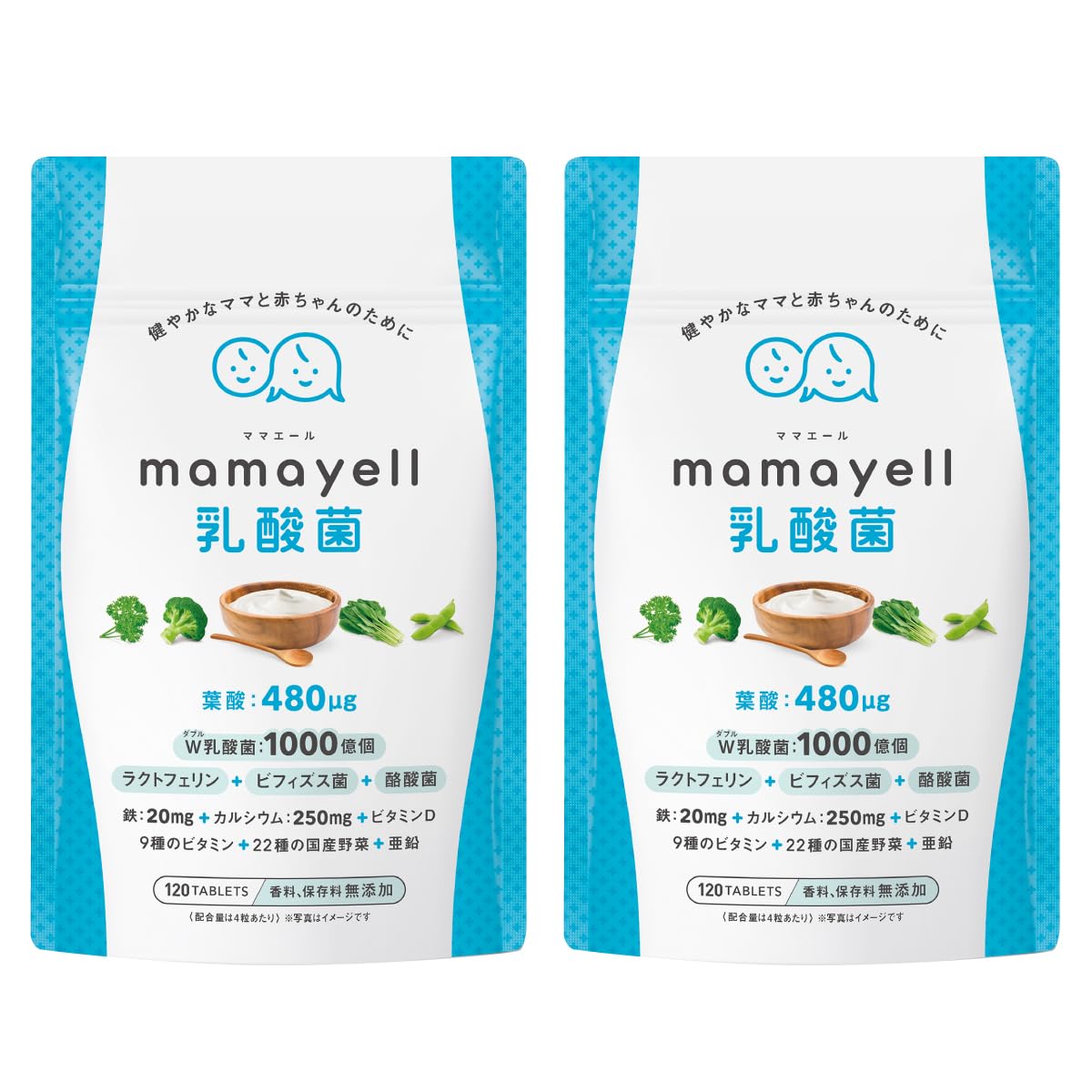 【送料無料】ママエール乳酸菌 葉酸 高配合 480μg 妊婦 妊娠 産後 サプリメント W乳酸菌 鉄 カルシウム ラクトフェリン ビフィズス菌 酪酸菌 亜鉛 9種類のビタミン 国産野菜22種 配合 1か月分 サイズ:2袋