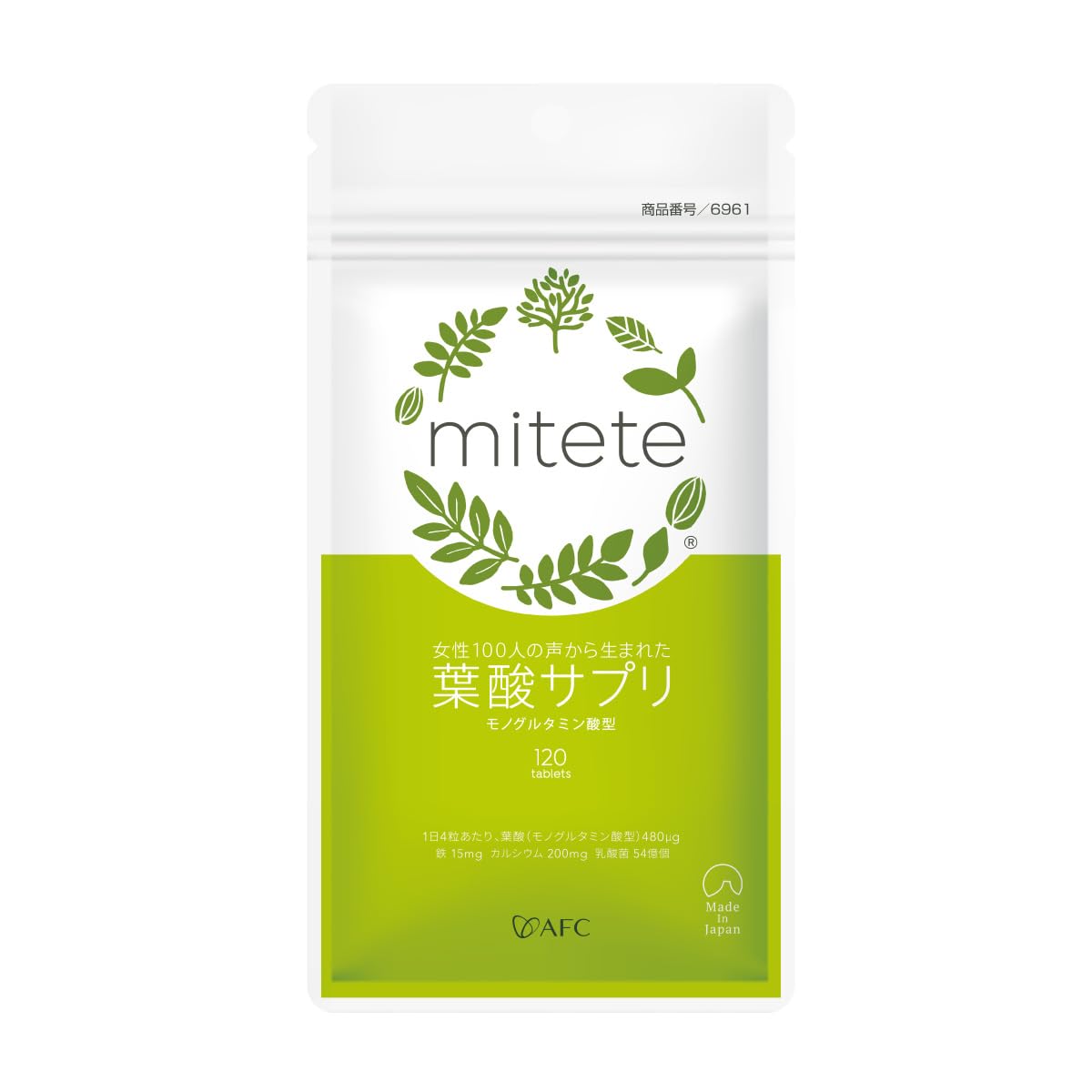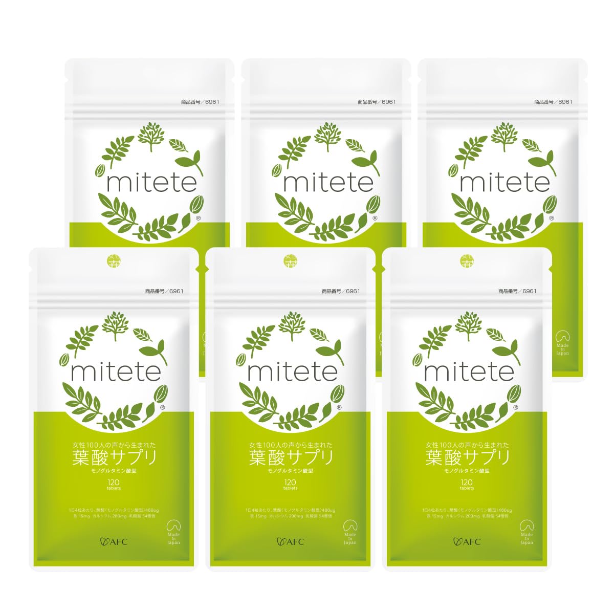 【送料無料】葉酸サプリ(袋) バリエーション 色:白、黄緑、サイズ:120個 (x 6)